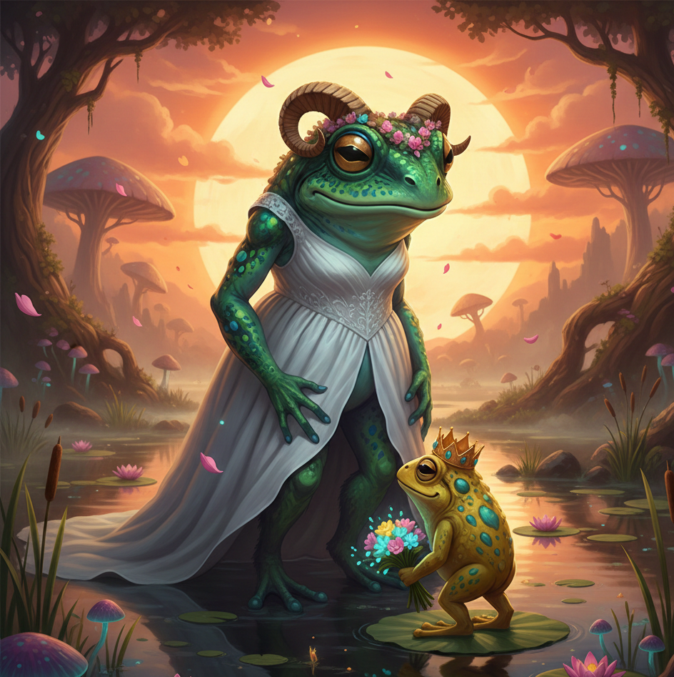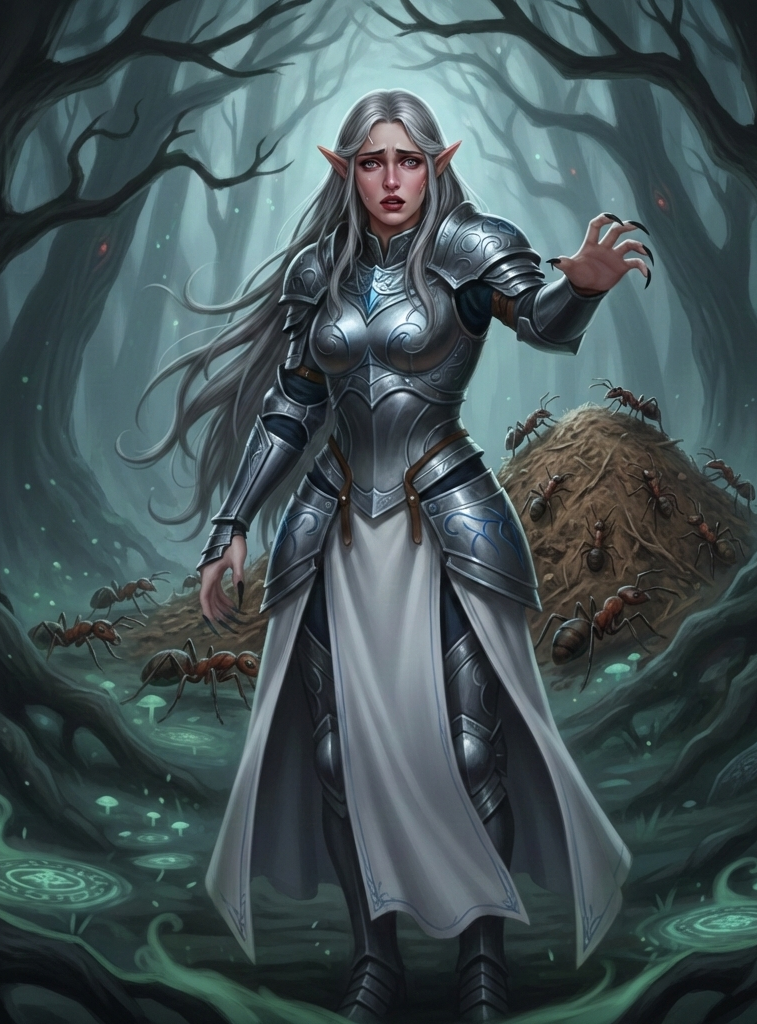 At night after the feast, Tuna went out to try and steal a blowgun she saw near the king’s pool. Unfortunately she kicked over a bench and the king woke up - they couldn’t understand each other so after a few drunk croaks, Tuna just left the building. Meanwhile, Crystal heard a familiar voice of her past lover calling her in the night, as he rose up and walked towards the voice he found his dead lover - Nyrene standing there. Yet something was wrong, the way she spoke, the way she moved it was wrong, she tried to embrace Crystal but he was hesitant - and thus Nyrene started to cast sleep on him, however Crystal was able to ressist the effect and ran away shouting and waking up the party. The party rejoined with Tuna and went to investigate, but instead of Nyrene all they found was a giant anthill with large aggressive jungle ants, that glowed a slight enchantment aura when detect magic was cast by Žvirblis. The party decided to leave the ants be and went to sleep ready to continue their journey.
