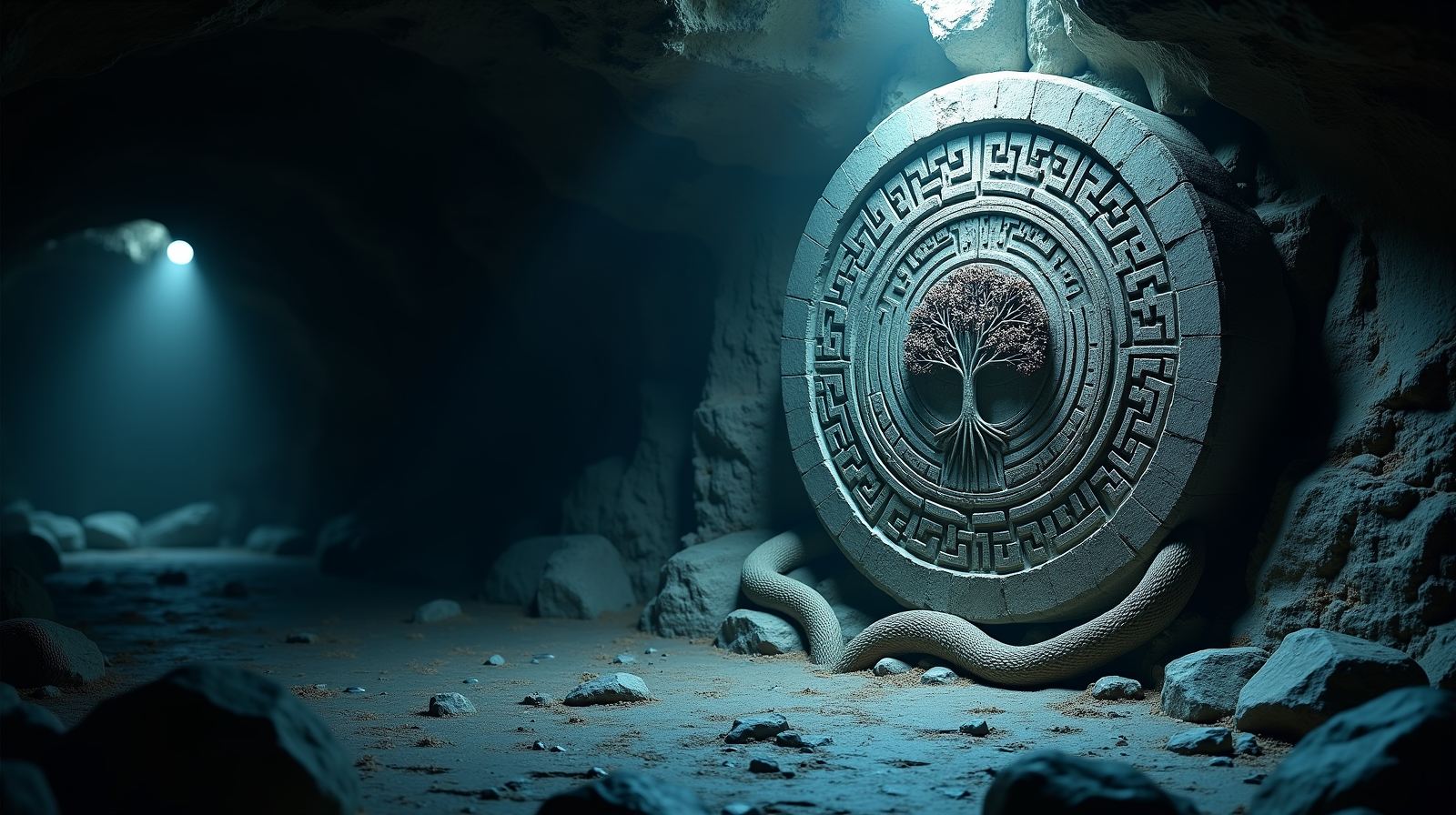 After some fiddling with the maze in the shrine they managed to found a secret entrance to a nearby cave. In the cave they found yet another maze - this time bigger and more complex with multiple entries and exits. After some experimentation and help of the guide they realized that this maze can be used to travel to other locations - however the solution of the maze is required. During the cave investigation they also found a torn piece of parchment with parts of a solution for the maze.