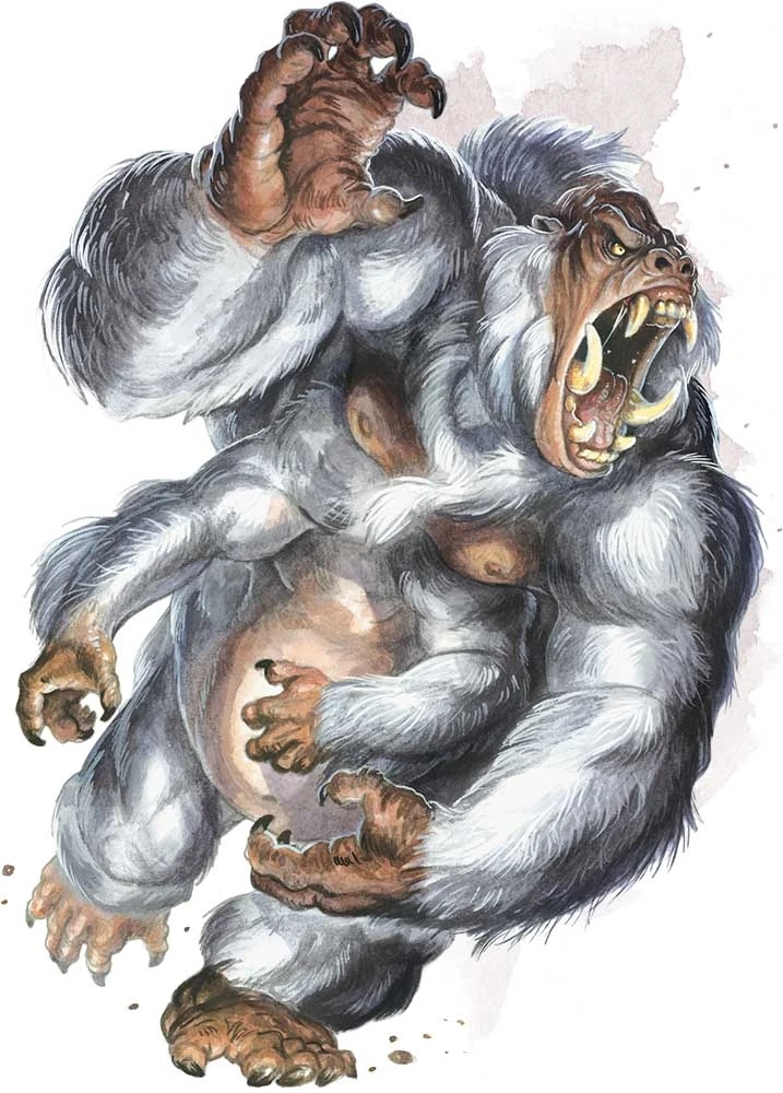 As the group continued, they noticed a large monkey sitting by a tree, fiddling with something in its hands. When Sara approached to say hello, she realized it was actually a colossal four-armed gorilla. The gorilla hurled what it was holding toward them and began charging straight at Sara. Tuna, Sara, and Crystal quickly noticed that it had thrown a small magical wand.