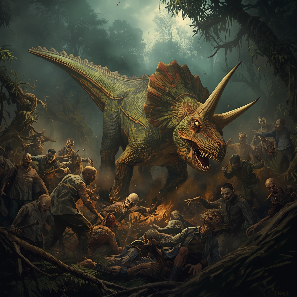 The party faced a horde of about 30 zombies, but with the help of the dinosaurs following Sara, and the surprisingly effective double taps from the guard with the “glorious glutes,” they managed to survive the battle. However, one of the dinosaurs was mortally wounded, while the other escaped. Sara later tracked it down and brought it back, while Kornelijus took a piece of the fallen Dinosaur.
